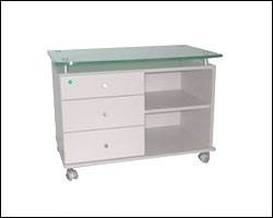 server scrivania in bilaminato di pioppo grigio con vano giorno e 3cassetti con top in cristallo