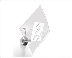 lampada aplique con cristallo con logo sabbiato e base in acciaio satinato - lampadina alogena