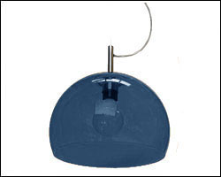 sospensione in metacrilato trasparente colore corporativo, misure diametro cm 43 con cavo in acciaio cm 140