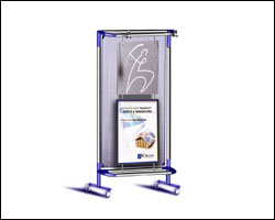 Espositore Rete K L cm 85-125 A cm 220 P cm 40 espositore in metallo verniciato con rotelle accessoriato con portaposter e logotipo