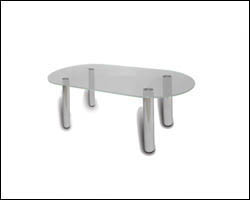 Allungo Pc Cristal TR L cm 90 A cm 67 P cm 42 tavolino dattilo per riunioni onda cristal con piano in cristallo sabbiato e gambe cromo D. 80