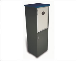 T 152 Bis TR L cm 47 A cm 147 P cm 42 mobile in bilaminato antracite con 1 anta in alluminio e cristallo sabbiato con logo trasparente e 1 anta in bilaminato antracite
