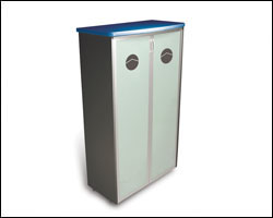 T100 Vetro TR L cm 90 A cm 147 P cm 42 mobile in bilaminato antracite con due ante in alluminio e cristallo sabbiato con logo trasparente